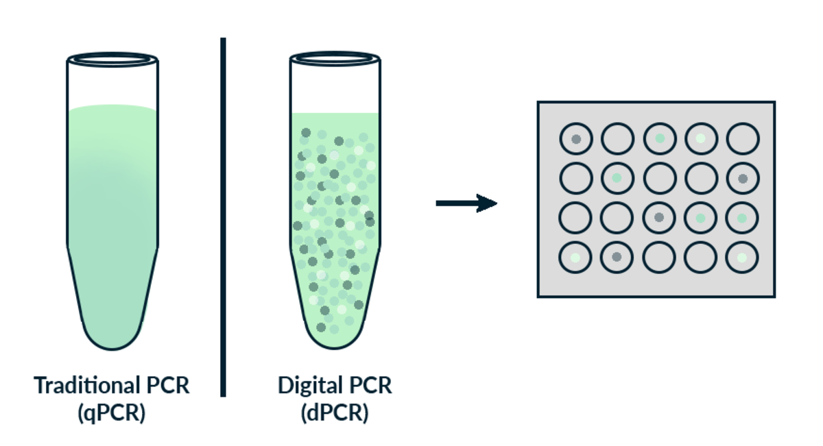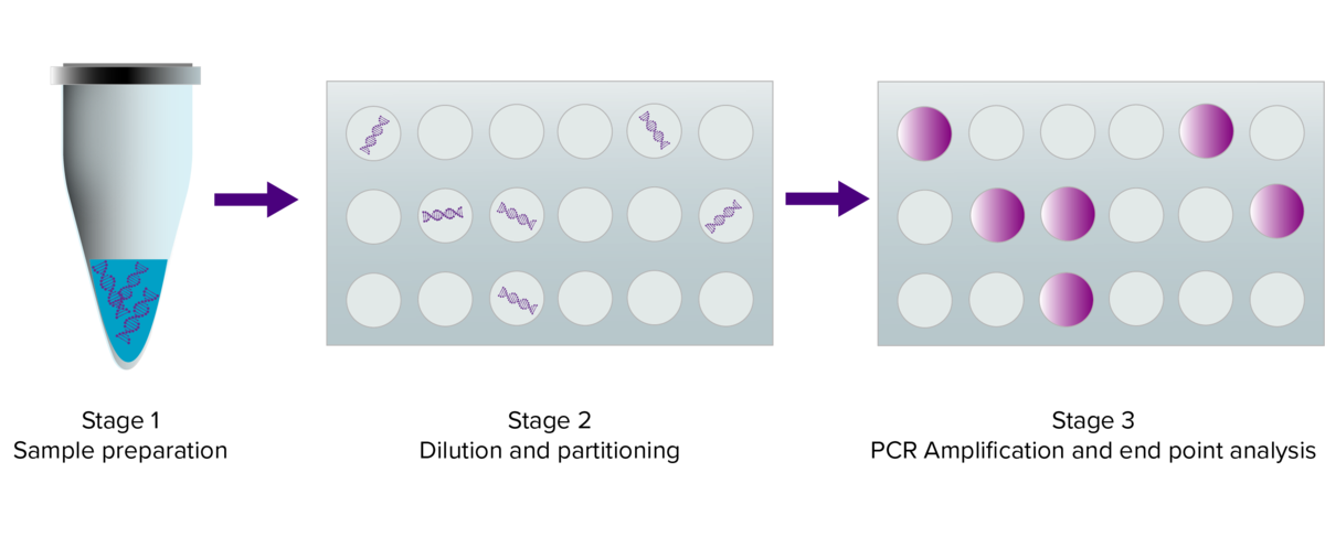 Digital PCR (dPCR) is the third generation of PCR after end-point PCR and real-time quantitative PCR (RT-qPCR). Digital PCR offers high sensitivity, accuracy and the ability to absolutely quantify the amount of target DNA in a sample. This high level of sensitivity permits detection of rare mutations, copy number variations (CNV), low abundance transcripts, rare microRNAs and very low viral loads.