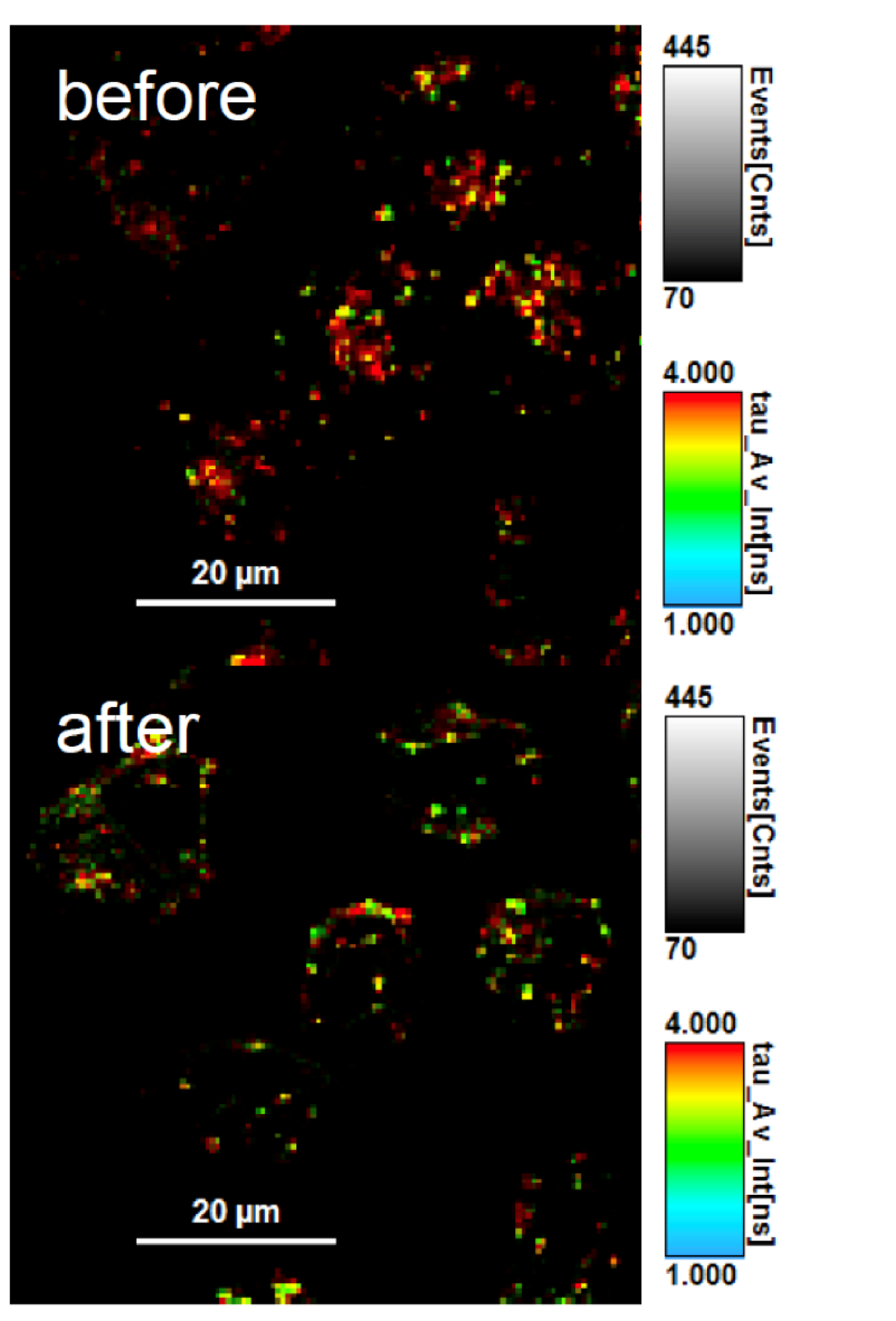 Flipper-TR® is a live cell fluorescent membrane tension probe. It is the first fluorescent membrane tension reporter developed for the field of mechanobiology. The fluorescence lifetime of Flipper-TR® is strongly dependent on the membrane tension, therefore through FLIM imaging it is possible to measure precisely the spatio-temporal distribution of tension in membranes. Flipper-TR® opens up a whole new field by giving access to real time membrane tension measurements in live cells.